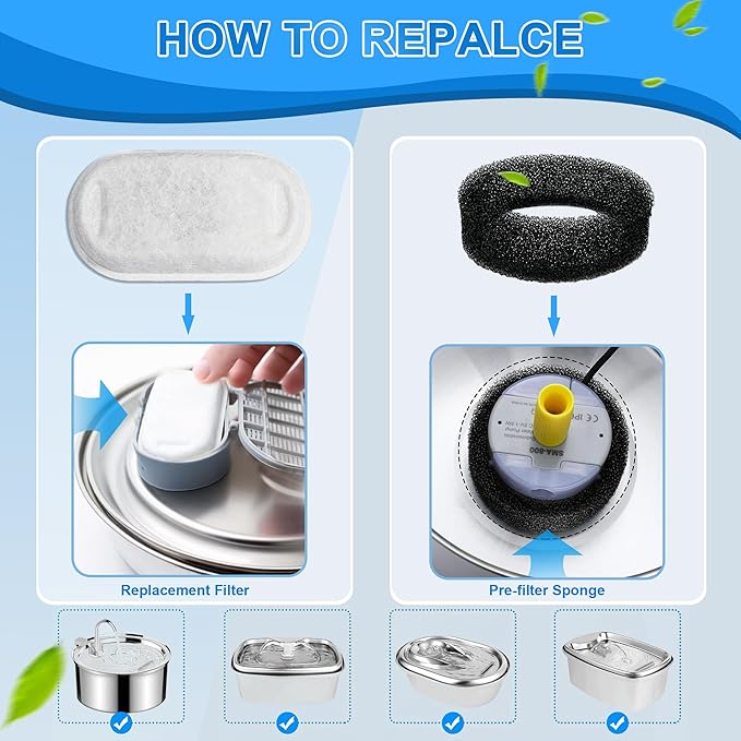 - Noter:Before using, please soak and rinse the cat water fountain filter with clean water, we recommend replacing the filter every 2-4 weeks.