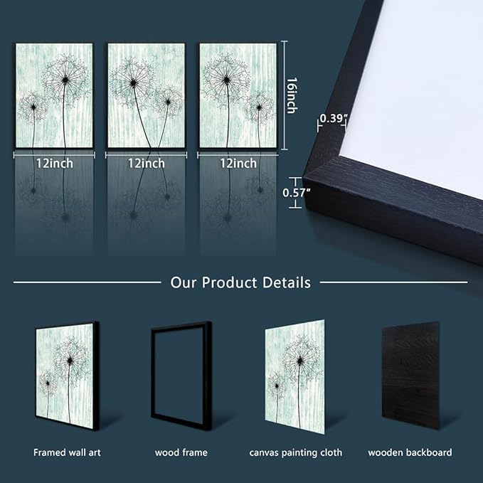 AHUASJART Black Framed Wall Art for Living Room Wall decor for Bedroom Room Decor light green background Pictures Dandelion Paintings posters kitchen Home Decorations 3 Piece Framed Prints Artworks