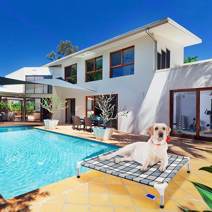 - 【Exquisite Craftsmanship of Outdoor Dog Bed】Manufactured with precision craftsmanship, each elevated pet bed undergoes rigorous quality checks. Fine stitching and robust structures ensure the product's longevity, capable of withstanding repeated use by pets.