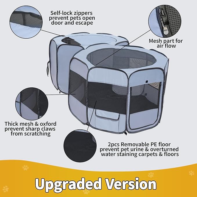 - 【Stable & Sturdy Construction】: Built with thicken metal frame, waterproof oxford cloth and reinforced stitching, ensuring long-lasting use, even with energetic pets. This playpen is designed to handle daily wear and tear while maintaining its shape.