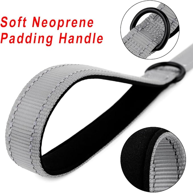 PLUTUS PET Short Training Dog Leash with Padded Handle for Medium Large Dogs,18 Inch Heavy Duty Strong Traffic Leash with Carabiner Clip for Climbing Walking or Guiding Blind(18”,Gray)