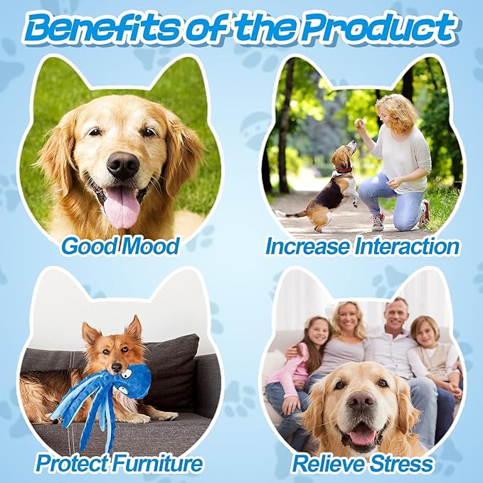 - Adorable Octopus Dog Toy: Our octopus toy comes in vibrant colors and is designed with an adorable octopus shape that dogs find irresistible. Eight legs design makes it perfect for games of tug-of-war and fetch. The design ensures the toy is easy for your pet to carry, throw, and roll around. Whether you have a puppy, small dog, medium dog, or large dog, this toy will bring joy and excitement to playtime.