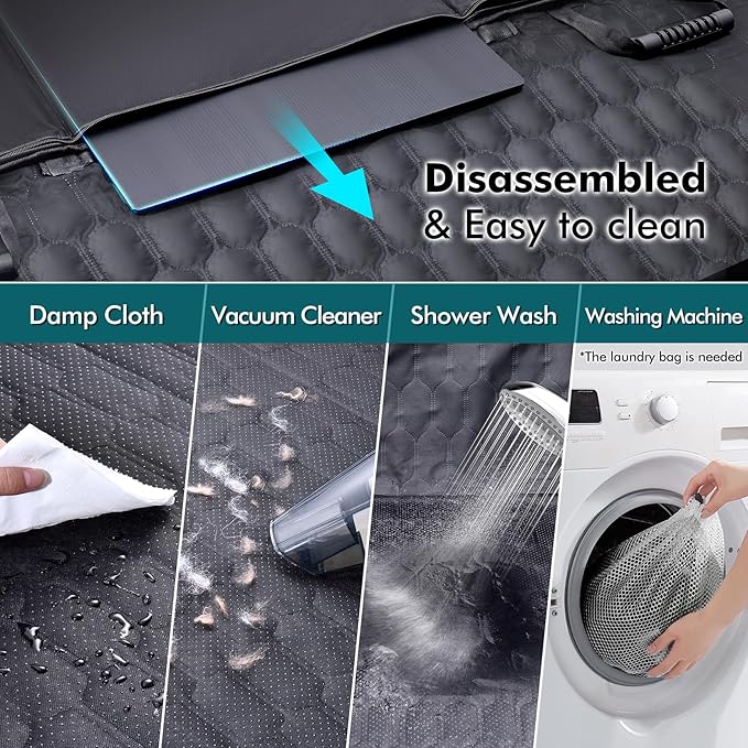 - Waterproof, Scrath-Resistant, Non-Slip: Chumajor dog hammock for car is crafted from 600D Oxford fabric using advanced hot pressing techniques. It provides ultimate protection for your dog car seat, shielding it from scratches, dirt, wet muddy paws, and dog hair. Cleaning is a breeze - simply wipe with a damp cloth or use a vacuum cleaner to remove any stains or debris, ensuring your car remains fresh and spotless