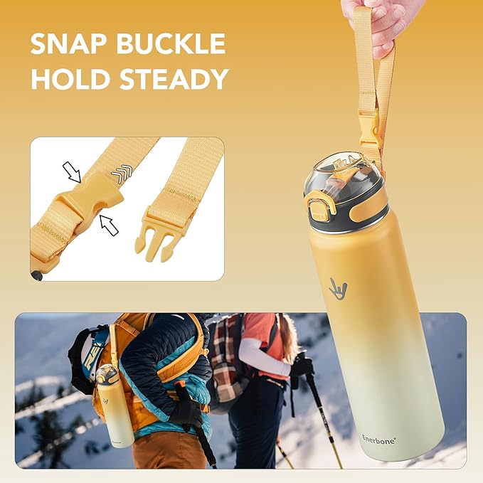 Enerbone 32 oz Insulated Water Bottle, Stainless Steel Bottle with Carrying Strap, Double-Wall Vacuum Insulation Design, Leakproof Sports Bottle with Straw, Keep Drinks Cold or Hot for Hours