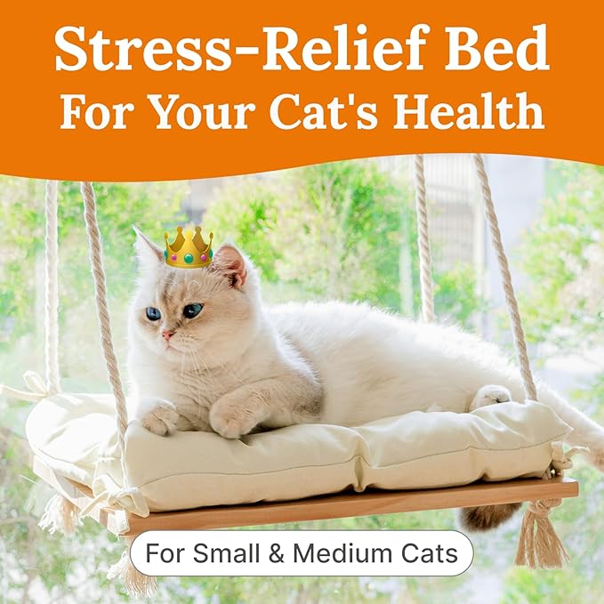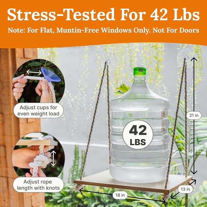- Strong & Sturdy Frame: Built with a solid pine wood board and thick cotton ropes, and enhanced with 4 strong suction cups capable of supporting up to 40 lbs, our cat window seat guarantees durability and a security while your feline friend enjoys the view.