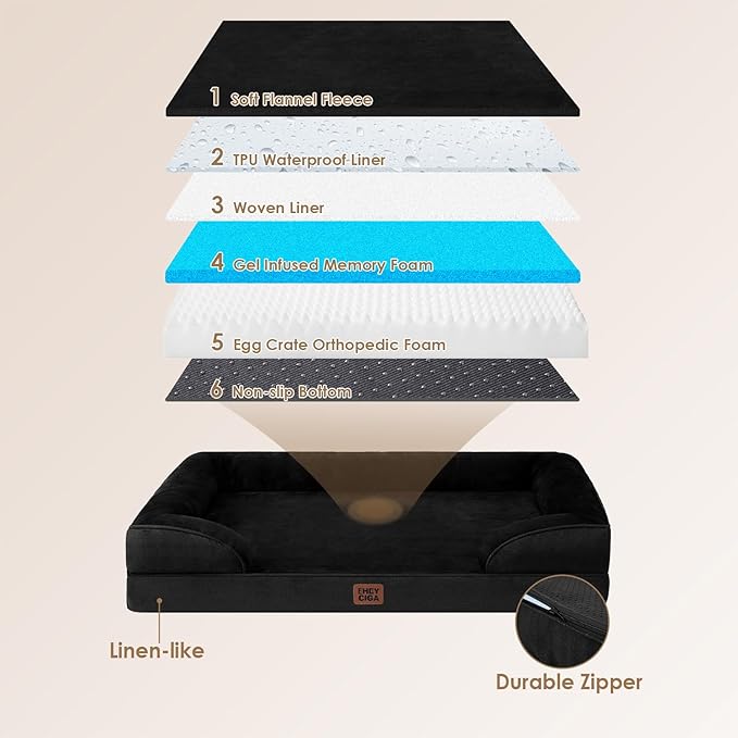 - MEMORY FOAM: The EHEYCIGA orthopedic dog bed features memory foam and egg crate foam to provide even support and pressure relief. It offers a good balance of softness and support, making it particularly suitable for elderly dogs to alleviate joint pressure.