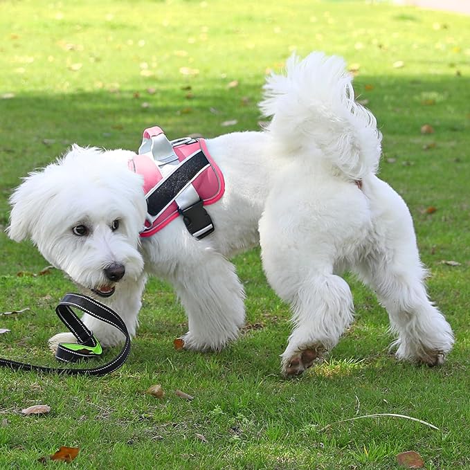- STURDY HANDLE: The adjustable dog harness with rugged nylon handle further enhances your distance from the dog and is more intimate with each other. Easy on dog harness is also the best partner for dogs and is easy to control your dog.