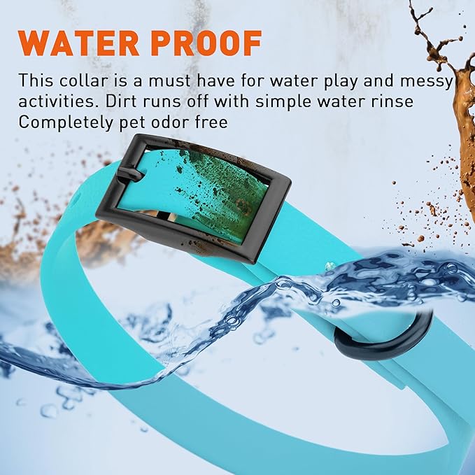 • Free Your Dog to romp in puddles and retrieve from lakes with the Dogline Biothane Waterproof Dog Collar. This water-repellent collar stays dry and odor-free, without shrinking or losing flexibility.