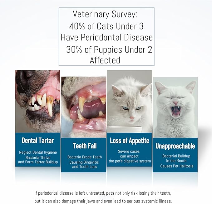 - 【Comprehensive Plaque Removal:】The dense, fine bristles can deeply clean between the tiny teeth of cats and small dogs, effectively removing built-up plaque and eliminating odor-causing bacteria. This leaves pets' mouths feeling refreshed and their breath smelling clean.