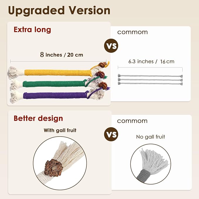 - Upgraded Design and Length: Our cotton rope cat toy comes with a silvervine fruit, which can better attract the cat's attention and is beneficial for their health. And our cat's bite rope is 8 inches long, which is 1.7 inches longer than others. Our cat rope is more worth your choice!