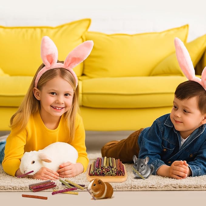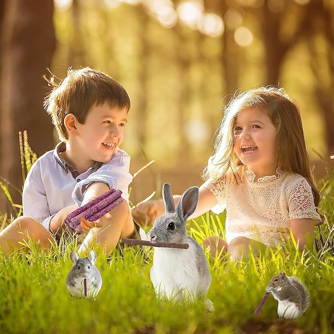 - Much Nutrition - Rabbit toys stick is rich in high fiber, effectively help digestion and improve pet appetite. Chew sticks with carrot powder is rich in carotene, improving pet hair gloss. In addition to being delicious and beneficial to small animal dental health, chinchilla chewing treats snacks keep your pet active and happiness. Due to the rodents teeth continue to grow, they really need to grinding teeth to keep oral helath.