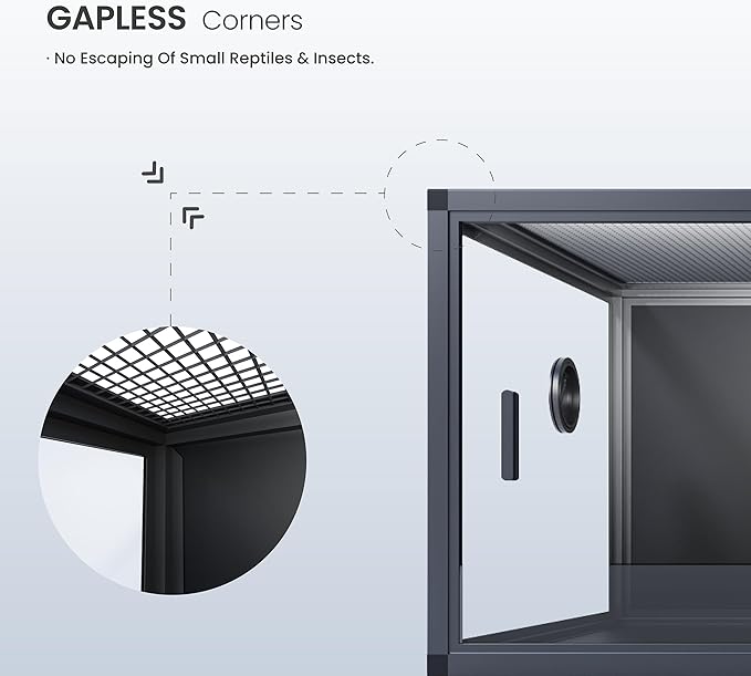 - 【Easy Maintenance】Front opening reptile terrarium with door handles included for easy cleaning & feeding. No more suction cup problems or unsightly fingerprints all over. The substrate barrier keeps the substrate in place. Our tempered glass doors are durable enough to withstand scratching.