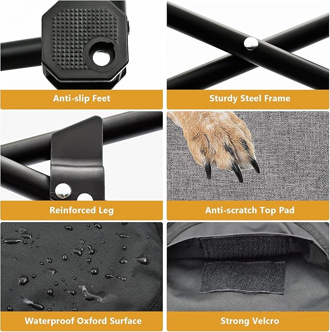 - No Assembly Required: The dog raised bed is an open-to-use design, when receive it, just open the dog bed frame and put the removable cover onto the 4 corners, it only takes 1 min to give your dog a cozy bed.