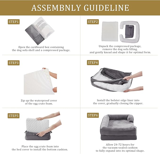 - Suitable Size: Suitable for All Breeds: 42"W x 32"L x 6.5"D; Sleeping surface: 34"W x 27.5"L (Up to 90lbs); When selecting the product size, please pay attention to the sleeping area. Please wait for 48 hours for full expansion to ensure optimal height and comfort before using.