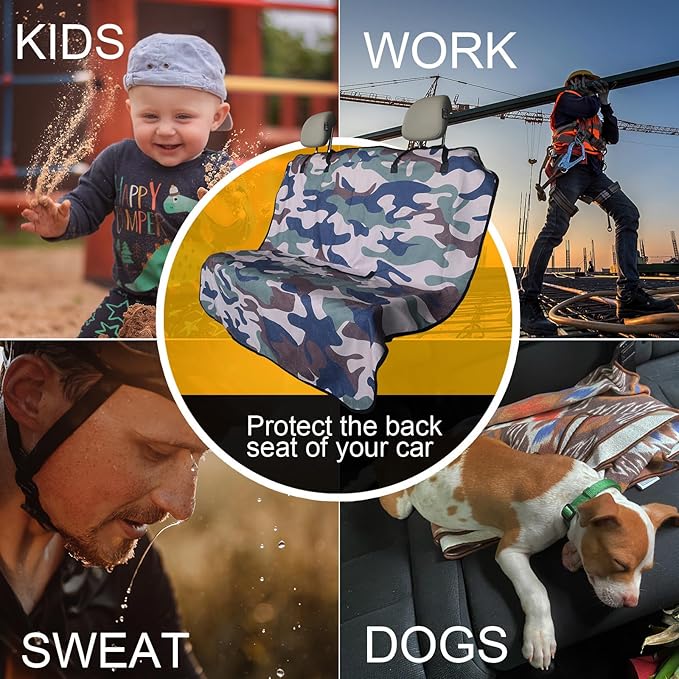 Back Seat Cover for Car Trucks Van SUV,Waterproof Rear Bench Towel Seat Covers for Dogs and Kids,Automotive Backseat Protector (Camouflage)
