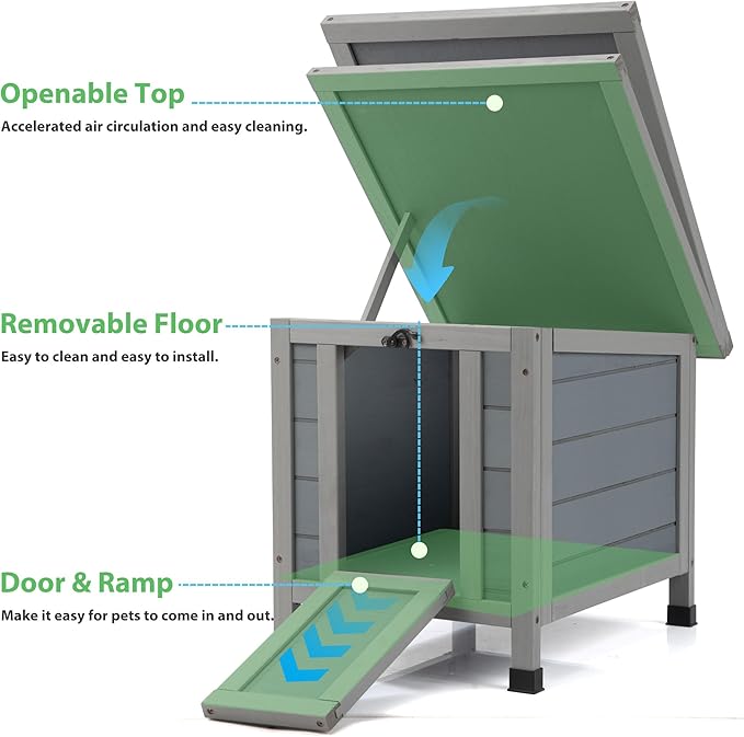 Coziwow Rabbit Hutch, Outdoor Cat House Weatherproof, Bunny Cage Indoor with Openable, Portable Small Animals Shelters with Nonslip Ramp for Hideout Rabbits/Feral Cats/Chicken/Duck/Small Animals-Gray