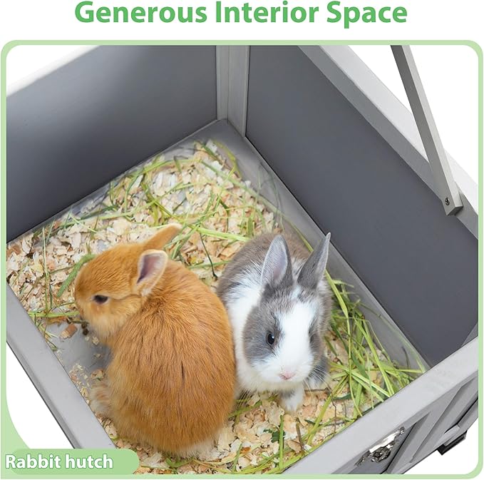 - Generous Space: Hutch size is 20.1"D x 15.7"W x 17.1"H, with a spacious interior that can accommodate 2-3 small animals such as rabbits or chickens and ducks.
