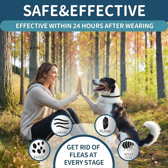 - Safe & Effective Protection:Worry-free pet care is now within reach with our flea and tick collar for dogs. Crafted with advanced natural formulas, it provides immediate protection against fleas and ticks within 24 hours, ensuring your dog's comfort and health.