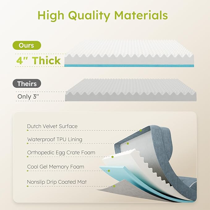 - Orthopedic Support:CWAWZ's xlarge dog bed is filled with a 4" thick layer of high density orthopedic foam to cushion dog's joints and provide optimal support as they sleep, especially suitable for older dogs with anxiety and large dogs with arthritis