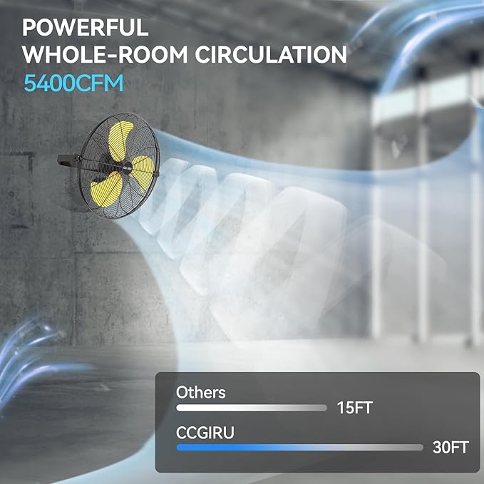 - 180Β° Tilt Airflow Control: Achieve the better cooling with this wall mounted fan's 180Β° vertical tilt feature, allowing you to direct the airflow precisely where it's needed. You can enjoy the versatile air circulation for all-season comfort