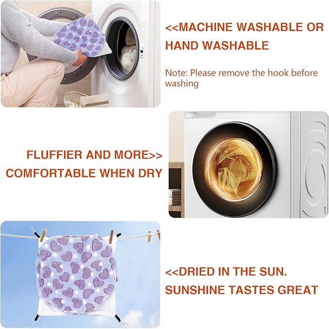 - 【Soft and Warm Material】This guinea pig hammock is made of coral fleece and arctic fleece, providing a soft and cozy environment that ensures your pet feels comfortable and warm while sleeping or playing inside. It is also washable and reusable, making it convenient for long-term use.