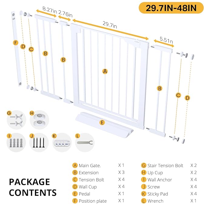 - Ideal for Wide Spaces: This baby gate stands 30.5 inches tall and adjusts from 29.7 to 48 inches wide; fits most doorways and hallways; ensures your little one explores safely at home