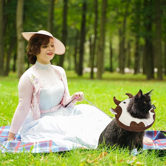 Adjustable Cat Collar Soft to Stop Licking After Surgery for Kitten, Alternative to Cone of Shame, Donut Cone for Cats, Pet Elizabethan Collar (Cow, Medium)