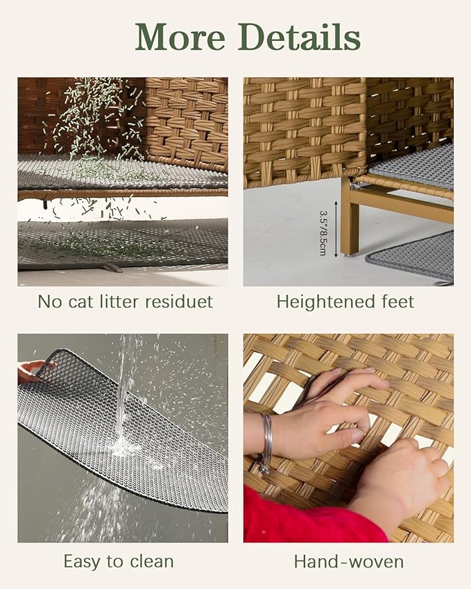 - Quality Build: The hidden litter box is hand-woven from odorless rattan material, hidden cat box is safe for cats to touch. The woven rattan is both waterproof and easier to clean, hidden litter box furniture making your cat and you more comfortable