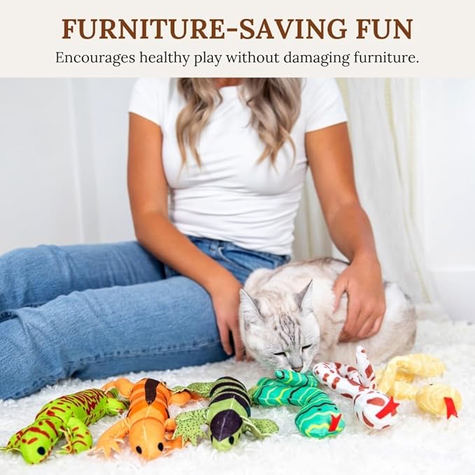 - ๐พ ๐๐ ๐๐ข๐๐ค-๐ ๐ข๐ญ ๐๐๐ฌ๐ข๐ ๐ง ๐๐จ๐ซ ๐๐๐ฑ๐ข๐ฆ๐ฎ๐ฆ ๐๐ง๐ ๐๐ ๐๐ฆ๐๐ง๐ญ - Give your cat the space to unleash their natural hunting instincts with our oversized 24โณ snake and 13โณ lizard toys. Designed specifically for energetic indoor cats, the elongated shapes allow for full-body bunny kicks, pouncing, and wrestlingโhelping them burn off excess energy while having fun. Whether your feline is a solo hunter or a lap-time kicker, these toys provide the ideal outlet for healthy exercise and mental stimulation.