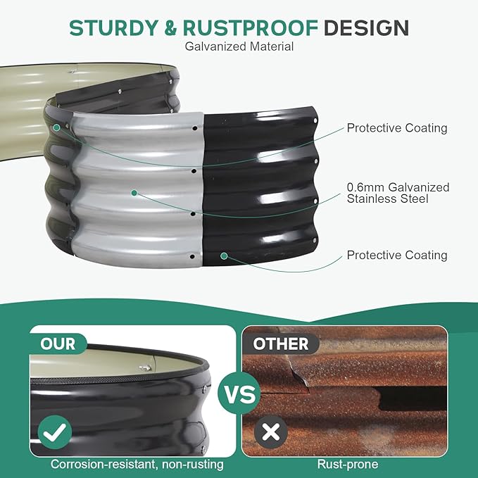 - 【 Durable and Long-lasting 】 BIRDSINYARD outdoor raised garden bed is made from 0.6mm thick galvanized steel,featuring a rust-resistant and corrosion-resistant coating.Garden planter effectively withstands humid weather and harsh conditions, ensuring it won't easily warp or rust with long-term use.