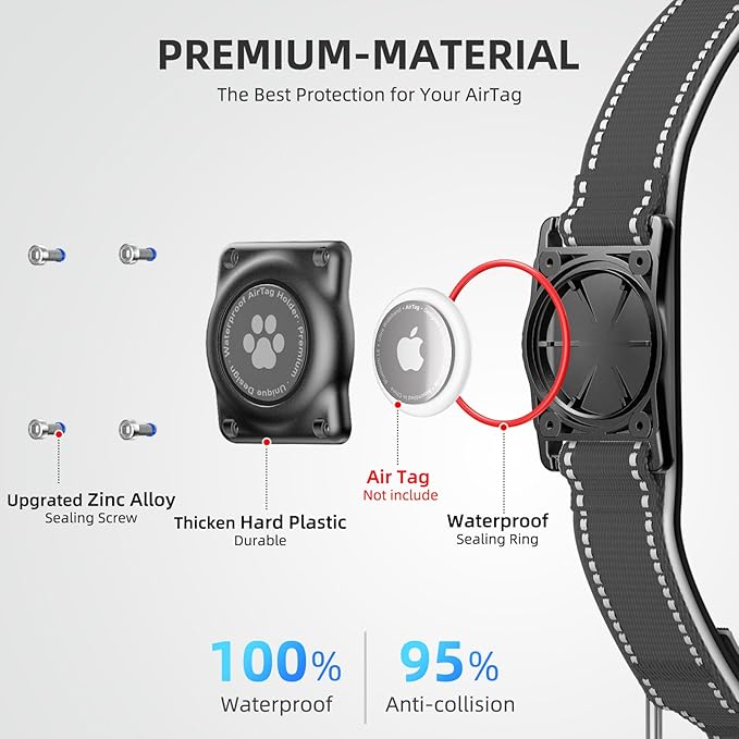 - Secure and Reliable: Our screw-secured dog collar AirTag holder keeps your tracker safe, giving you confidence that you can find your dog in a pinch. Built to withstand rough play, this collar is perfect for energetic dogs.