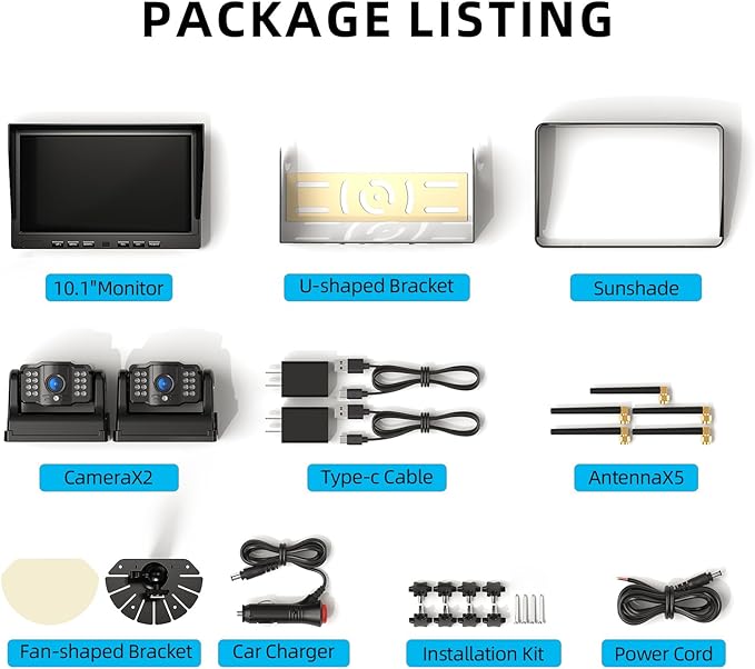 - 10.1" IPS Monitor & IR Night Vision:With high resolution of 1080 pixels, the larger monitor gives us broader and clearer image, the cameras offers a 150Β° wider view, so that we can drive with a pleasant mood