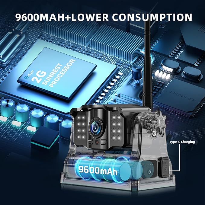 - Rechargeable Li-ion Battery: Built-in 9600mAh large-capacity battery, breaking the capacity limit, ultra-long life. No need for additional power, truly wireless camera. Please use the included Type-C cable and charger to charge the camera