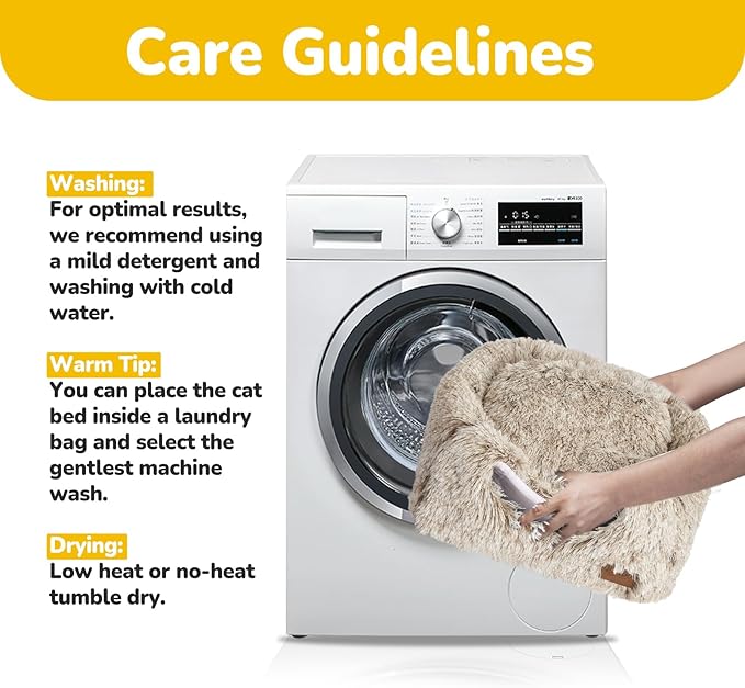 - 【Easy to Clean】Hand washing is recommended to maintain the quality of the cat bed. If machine washing, place the entire bed in the machine on a gentle cycle with cold water, and tumble dry on low heat afterward (fluff up the bed before use)