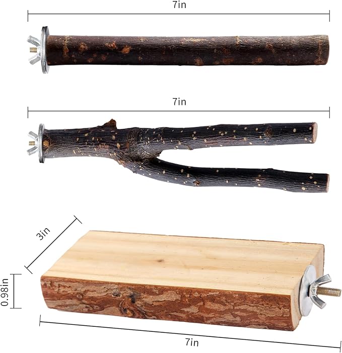 - Safe Chewing Material: Made from premium, untreated natural soft fir wood , and apple wood, those wood perchs for bird cages are ideal for birds to chew and gnaw, helping to keep their beak conditioned and shaped.