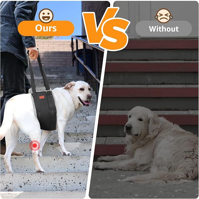 - Lifesaver: The dog carrying harness can pick up the rear end of your fur friend,prevent hip pain and injury caused by aging, support them getting in and out of the car,up and down the steps,help them get up from lying down,stabilize both the gait and spine