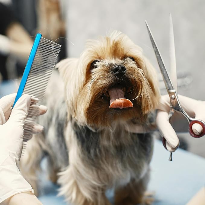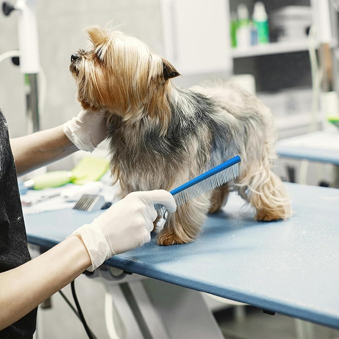 2 Pack Dog Combs with Stainless Steel Teeth Applicable to Cat Dog Comb Removing Tangles Easily Remove Dirt Grooming Anti-Slip Comfort Grip Handle (blue)