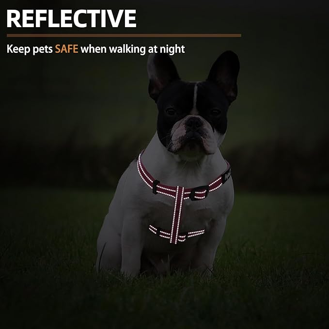 - [Durable & Comfortable Material] - High-quality nylon fabric with high-density webbing to add durability. The webbings have been widened, and the surface is very smooth, so the harness's comfort will be better. Your dog will enjoy the daily walk in this comfortable dog harness!