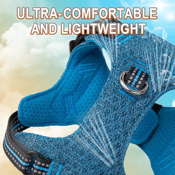 Dog Harness Step in Dog Vest Harness, Reflective Adjustable Puppy No Pull Harness Breathable Soft for Small and Medium Dogs Cats, Blue/Black, S