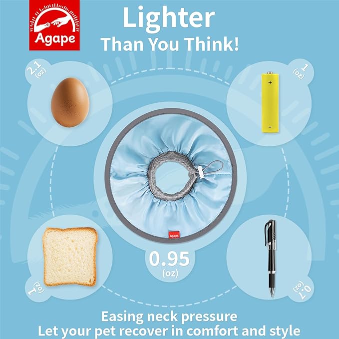 - 【Soft & Lightweight】Unlike bulky, uncomfortable cones on the market, Agape's cat cone is made with two layers of silky fabric and a ribbed knit collar, weighing just 1.2 ounces—about the same as two single AA battery. This ultra-light, breathable, and soft design ensures your cat can sleep peacefully and comfortably, without feeling any strain or restriction around their neck