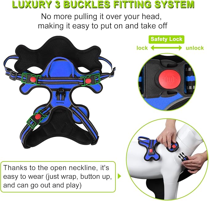 - 【 No Pull & Choke-Free Design 】Designed with your dog's comfort in mind, our No Pull Dog Harness is structured to distribute pressure evenly throughout your dog's body, preventing choking and discomfort during walks. This feature offers a more humane and safe way for you to control your dog.