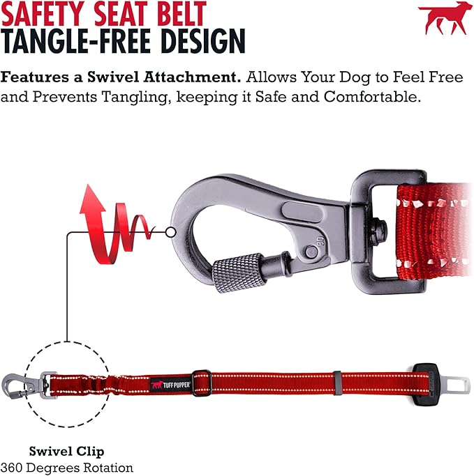 Tuff Pupper Dog Seat Belt | Adjustable Length Dog Seatbelt Restraint | Tangle-Free Locking Carabiner | Shock-Absorbing Bungee | Reflective Stitching for Visibility | Universal Fit for Cars & Trucks
