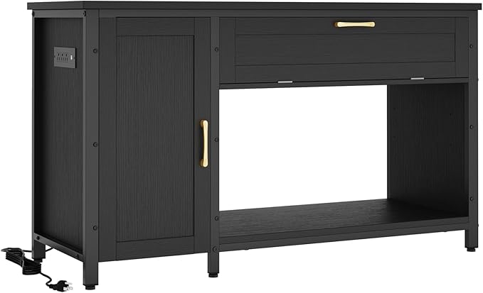 - 𝐒𝐥𝐞𝐞𝐤 𝐌𝐨𝐝𝐞𝐫𝐧 𝐒𝐭𝐲𝐥𝐞: Featuring a chic black oak finish, the aquarium stand is designed with a cabinet and drawer accented by gold door handles, adding a touch of modern elegance to your living room decor