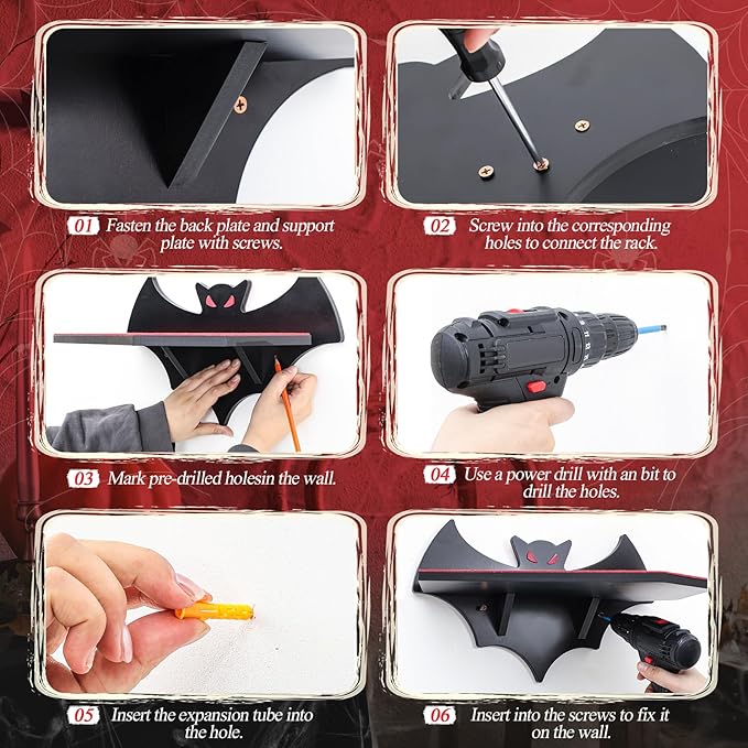 - Unique Gothic Design: this Gothic cat wall mount shelf features a special dark design, incorporating Gothic elements such as bats and coffins, in shades of red and black; It's more than just a shelf - it's a piece of decorative wall furniture that adds a touch of Gothic charm to any space, perfectly suited for cat lovers with a penchant for the Gothic style