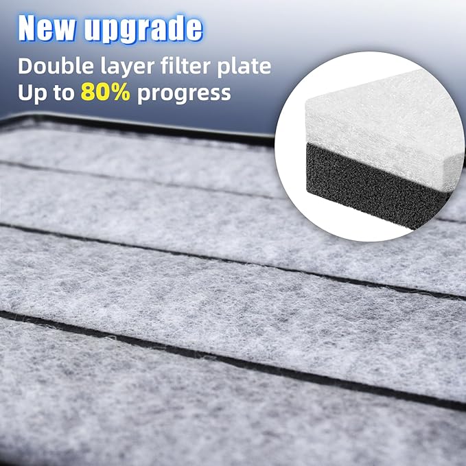 - User-Friendly Design – Easy to install and maintain, it features a top cover for quick access to clean or replace filter media. The waterfall-style outlet promotes better water circulation and enhances oxygenation efficiency. Minimum water level required: 2.6 inches.