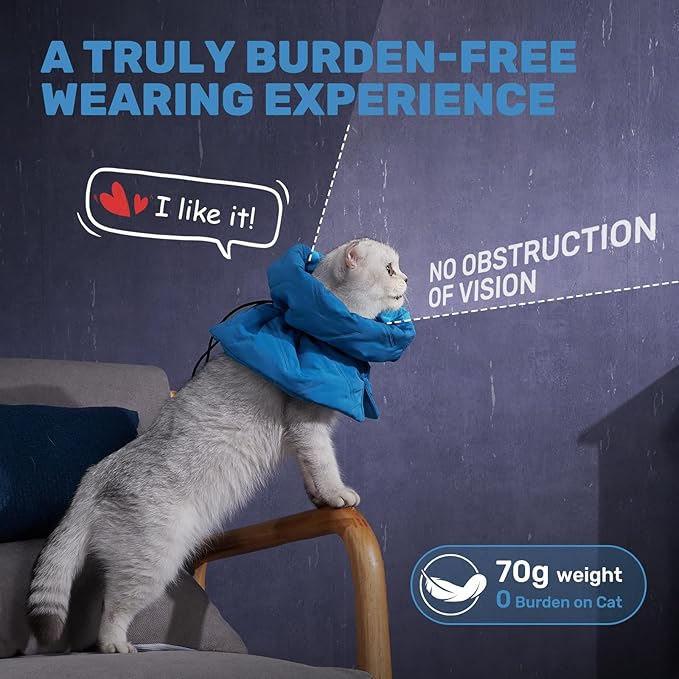 Cat Recovery Collar, Soft Adjustable Cat Cone Alternative, Lightweight Waterproof Fasteners Collars for Cats Kittens Puppies, After Surgery Stop Licking, Post-Surgery or Skin Protection