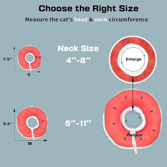 - Suit for all Size of Cats: We offer 2 sizes of cat cone, and the middle of each cone is adjustable, ensuring a definite fit for your cat. Size M fits (9.5 "x9.5 "x2.2‘’) cats with a neck circumference of 5-11 inches