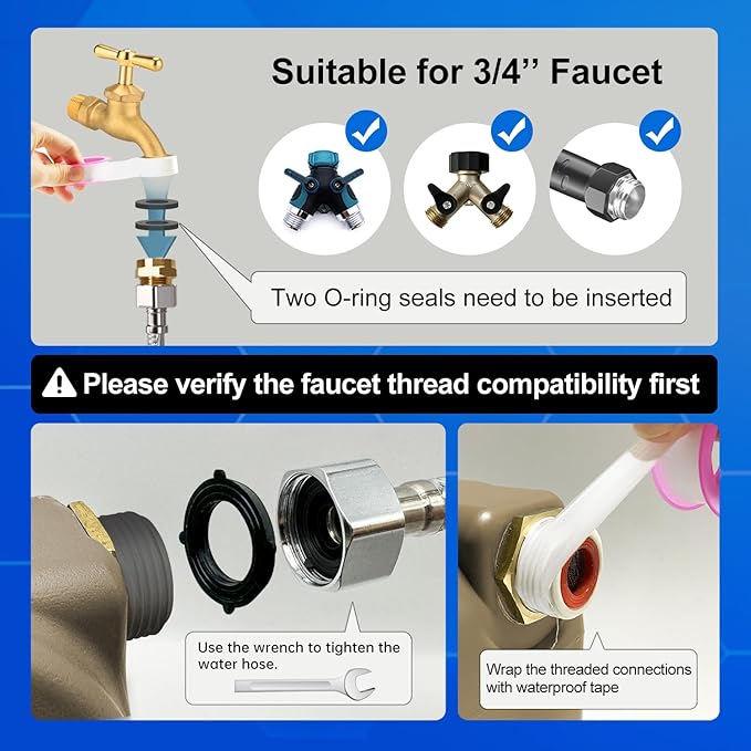 - Easy to Install: Includes water bowl, 150cm/59in water pipe, copper connector, waterproof tape. Smooth faucet connection for 3/4'' GHT faucets. Copper connectors need to be put into two"O"sealing rings