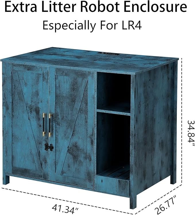 Cat Litter Robot Enclosure, Enclosure for self-Cleaning Litter Boxes,Adjustable Shelf for Dog Proof and Storage,Charging Station,Locks Added for cat,Large Indoor Cat House,Blue
