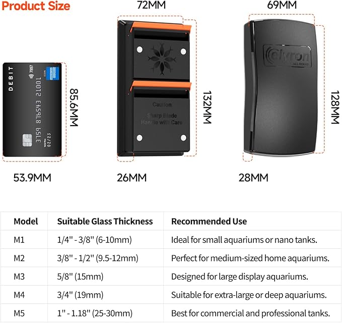 Elyron Dual Scraper Magnetic Aquarium Cleaner,Strong Magnetic Fish Tank Cleaner & Aquarium Algae Scraper for Glass/Acrylic Tanks (Small for ≤1/2" (12mm) Thick Glass)